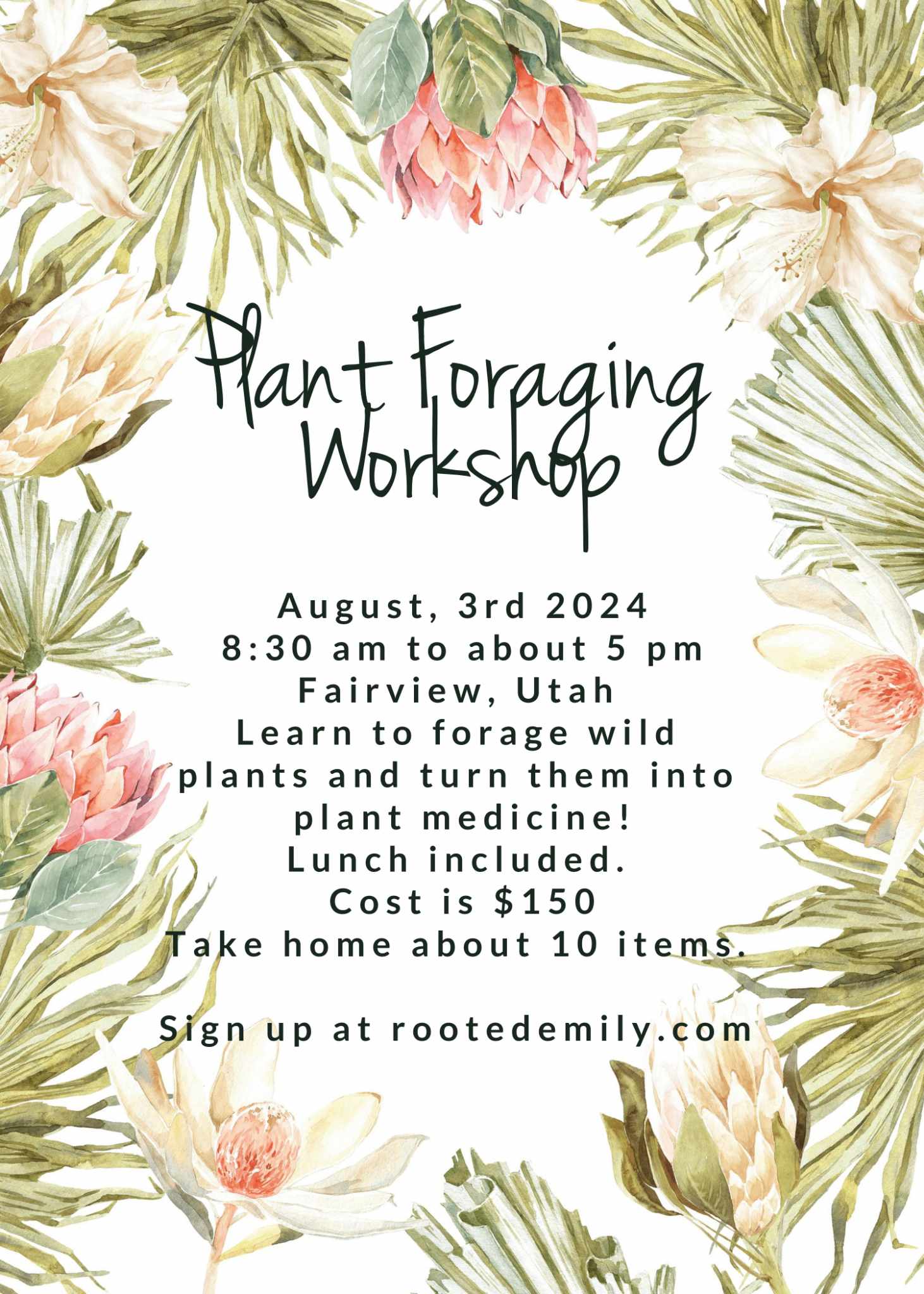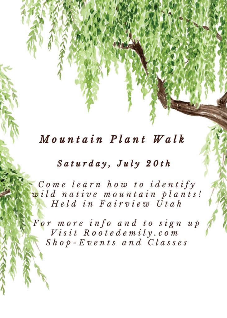 Join me near Fairview Utah to learn about the lower elevation plants that grow in the area. We will identify and discuss the medicinal properties of the plants we see. The walk will go from 9 am to 12 noon. Visit my events and classes page under the shop tab for more information. Hope to see you there!