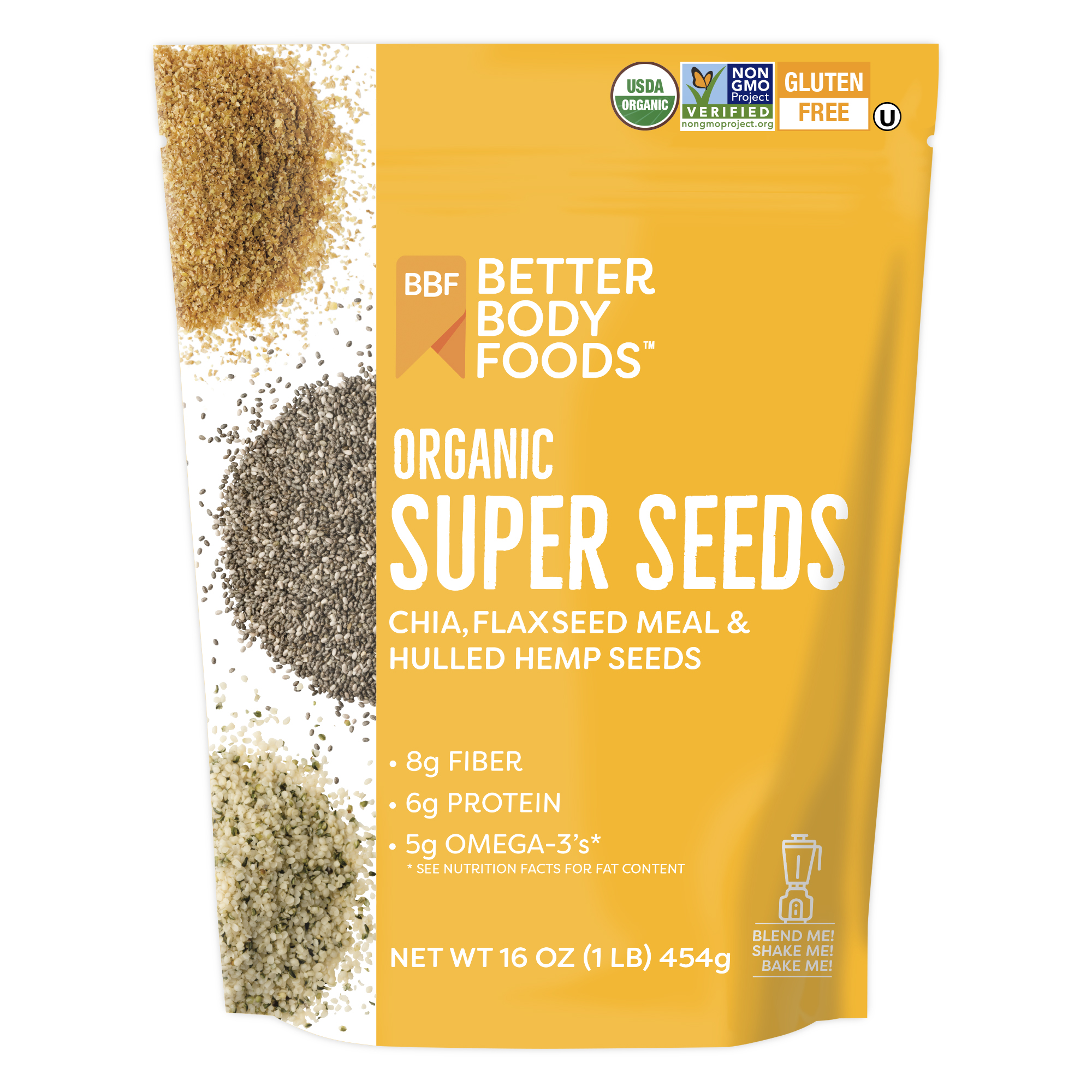 Contains chia seeds, flax seeds and hemp seeds. High in Omega 3 fatty acids and protein. Use in smoothies, baked goods, salads and soups.