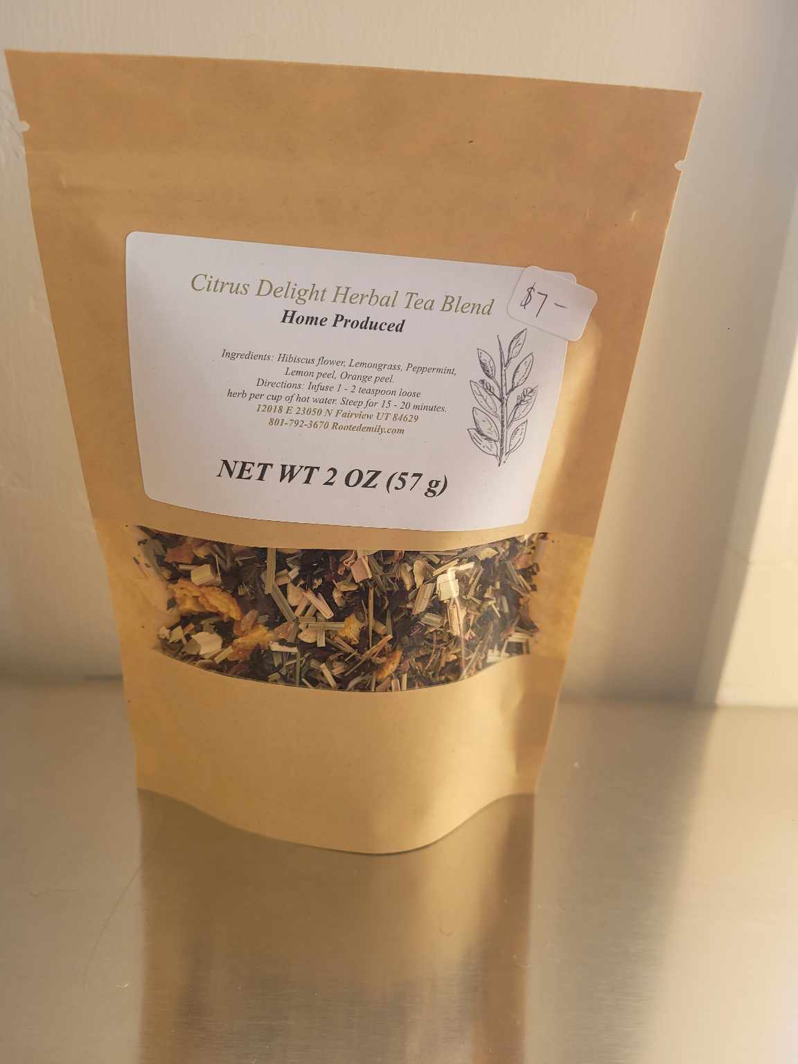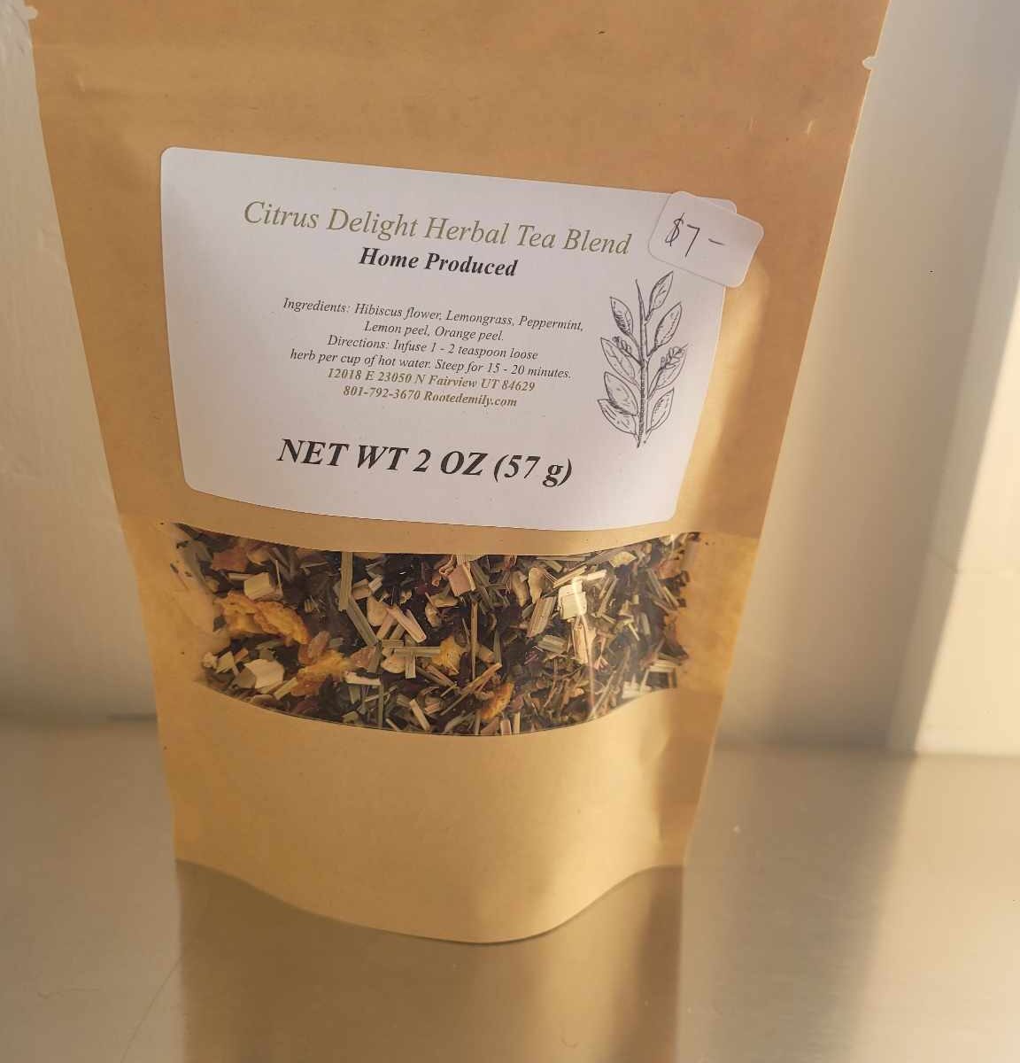 A vitamin rich refreshing and uplifting tea that can be enjoyed warm or chilled. Ingredients: Hibiscus flower, Lemongrass, Peppermint, Lemon peel, Orange peel. 2 oz bag.