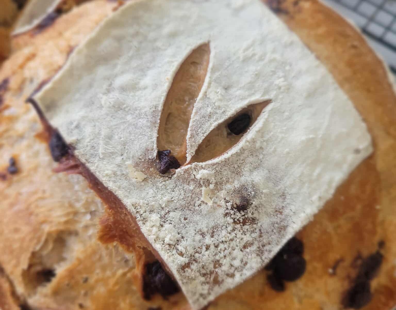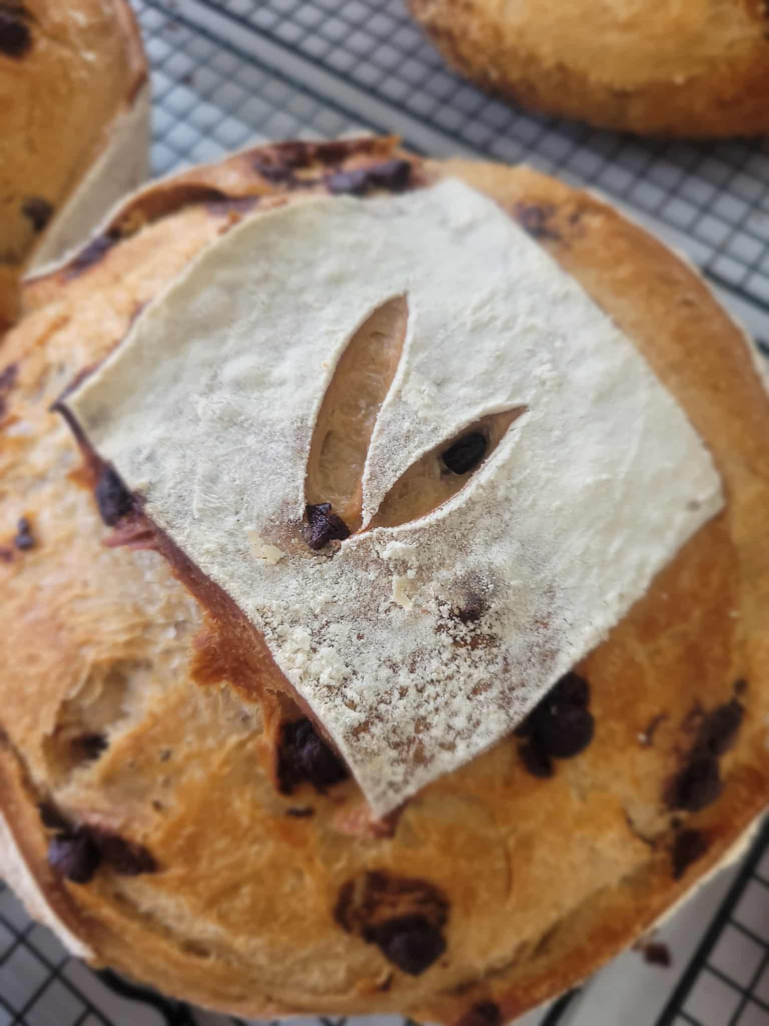 Rich chocolatey bread with a hint of vanilla. You’ll think you’re eating a chocolate chip cookie! A delicious treat for those who love chocolate and vanilla. Best enjoyed within 1 to 2 days of baking. Ingredients: organic artisan flour (hard red wheat flour, malted barley flour), water, starter, semisweet chocolate chips (soy free), honey, MCT coconut oil, vanilla extract, sea salt. 2 LB loaf.